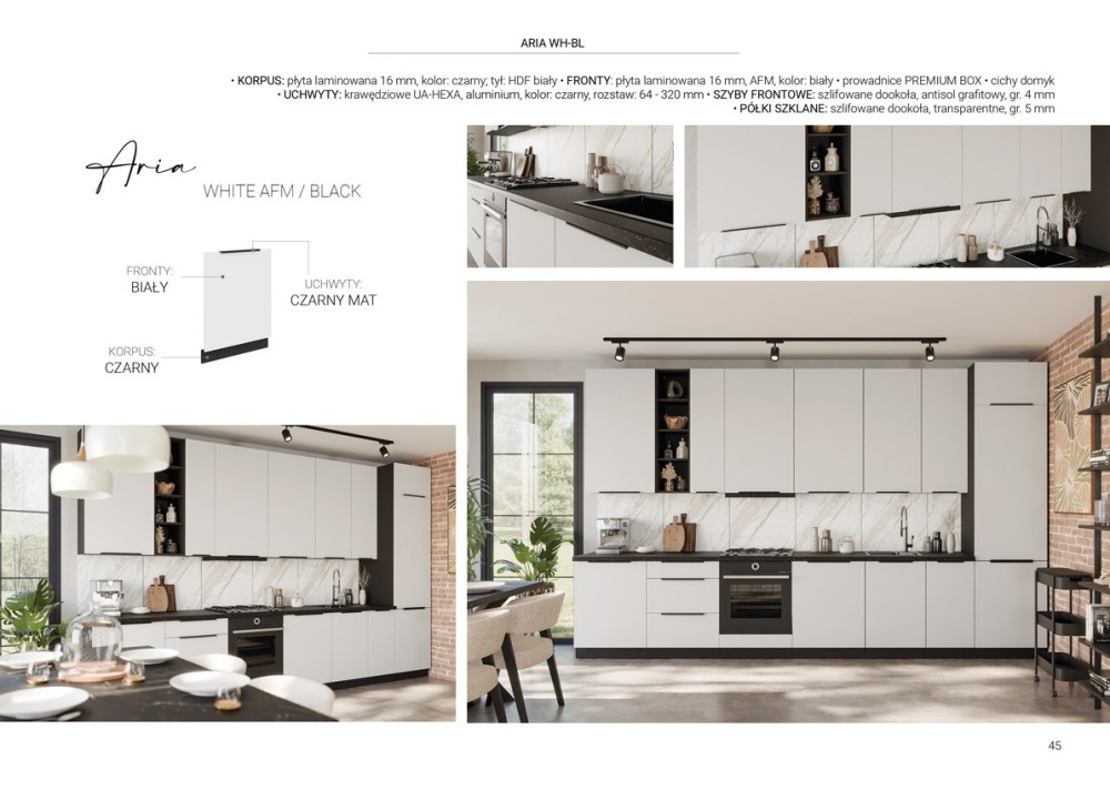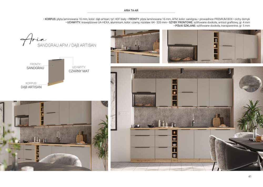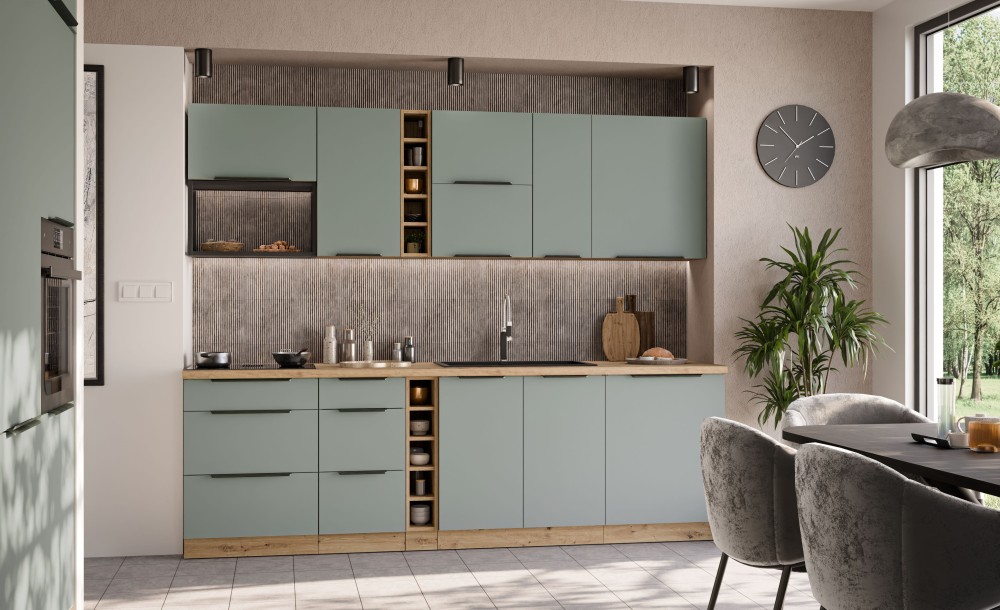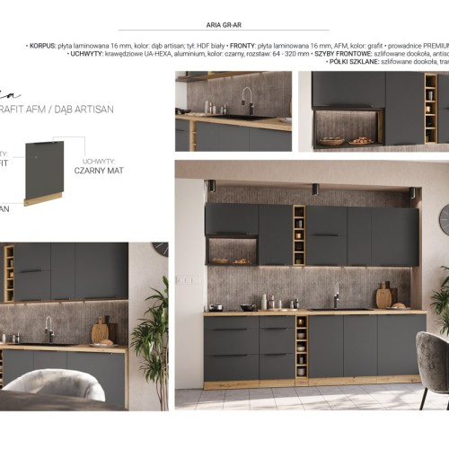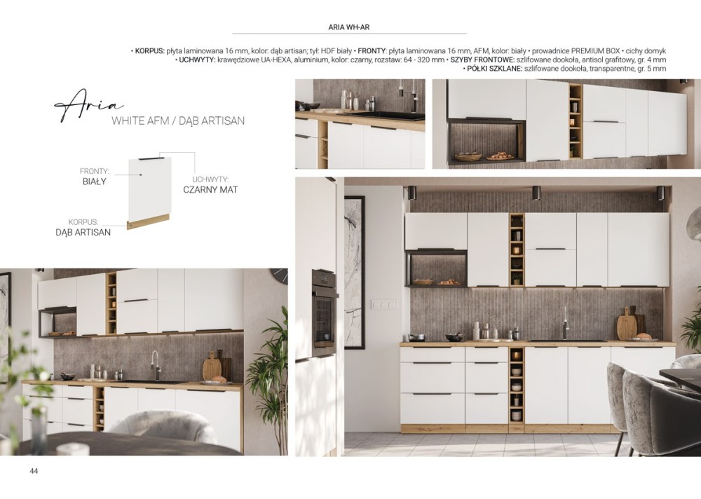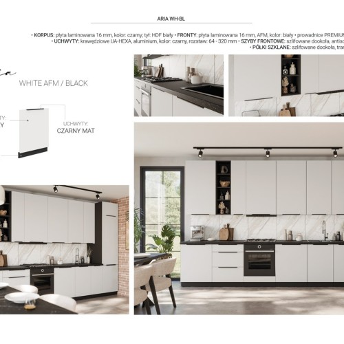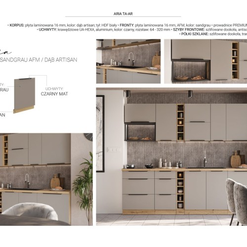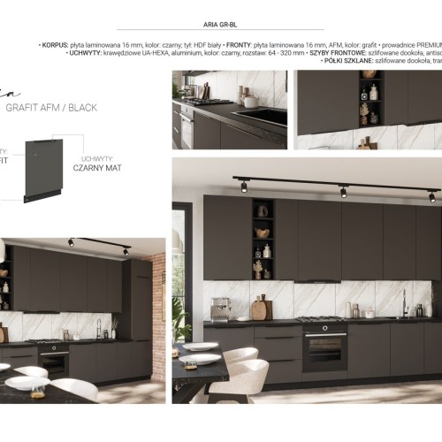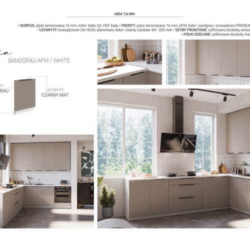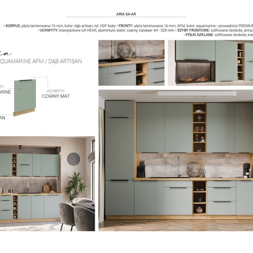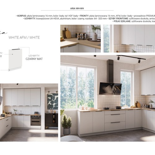 KUCHNIA ARIA to połączenie elegancji i funkcjonalności, które tworzy przestrzeń idealnie dopasowaną do indywidualnych potrzeb. Dostępna w wielu wariantach kolorystycznych, emanuje harmonią i nadaje wnętrzu wyjątkowy charakter, budząc przy tym poczucie komfortu i domowego ciepła.