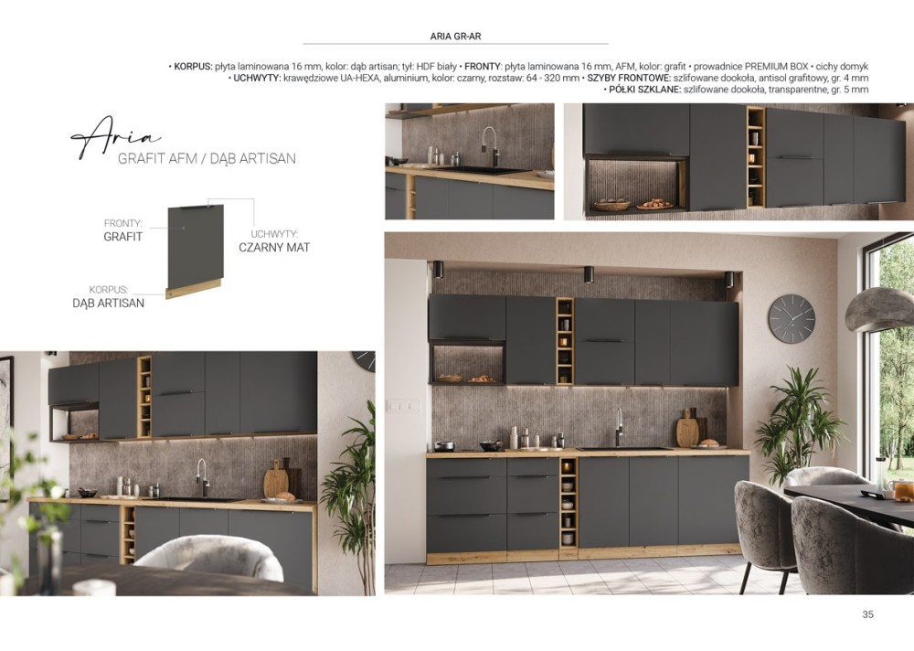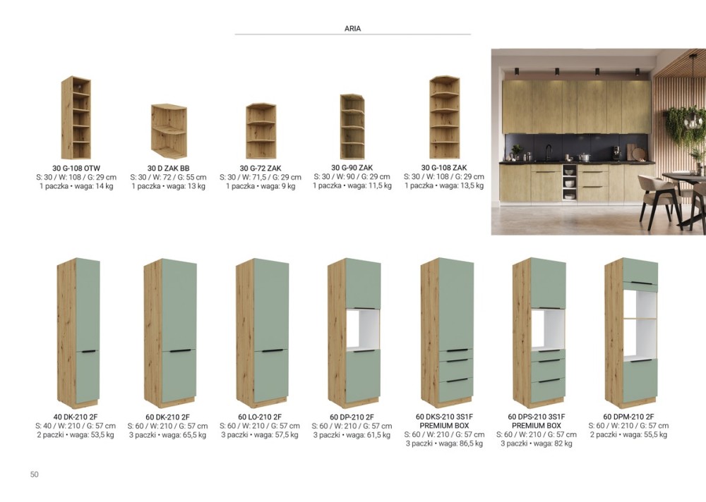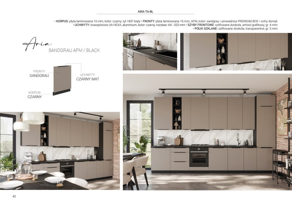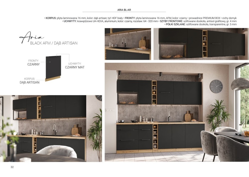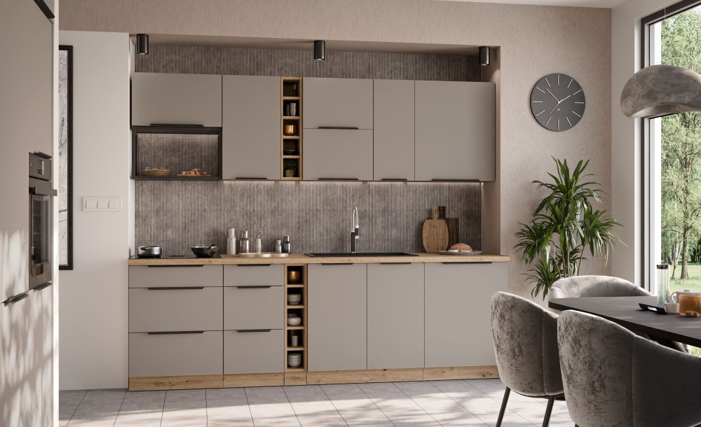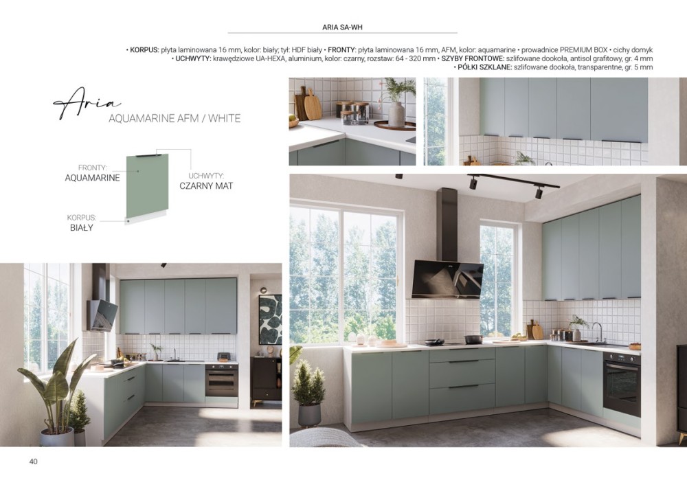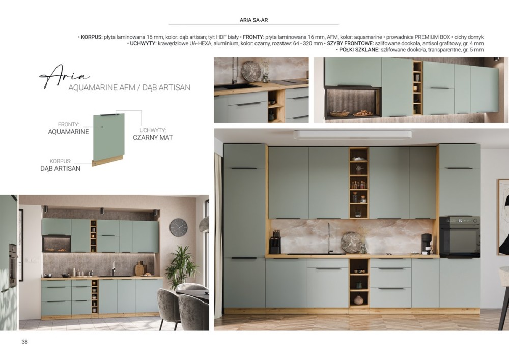 KUCHNIA ARIA to połączenie elegancji i funkcjonalności, które tworzy przestrzeń idealnie dopasowaną do indywidualnych potrzeb. Dostępna w wielu wariantach kolorystycznych, emanuje harmonią i nadaje wnętrzu wyjątkowy charakter, budząc przy tym poczucie komfortu i domowego ciepła.