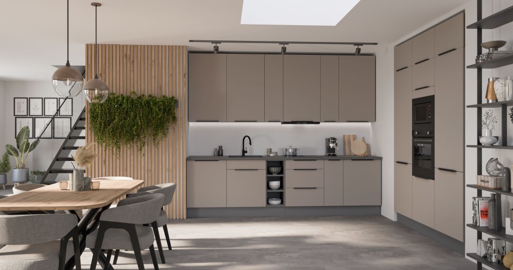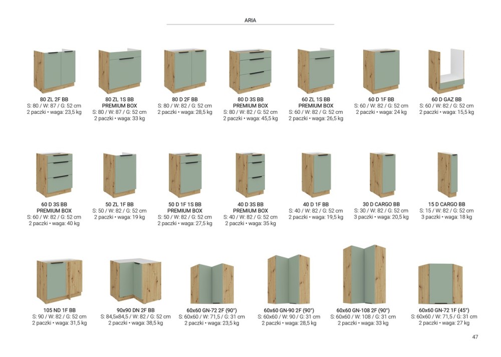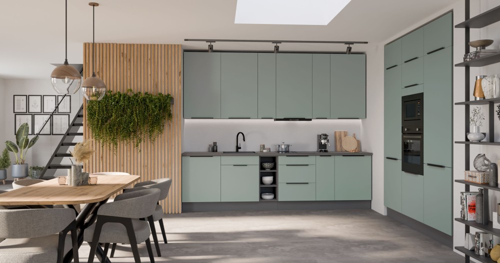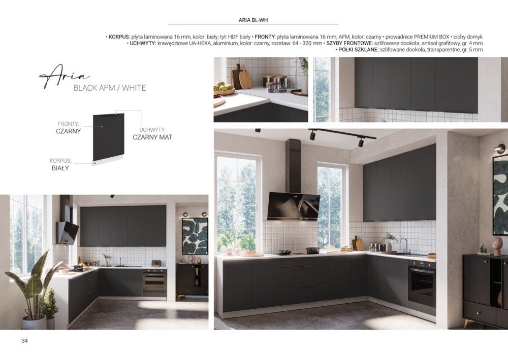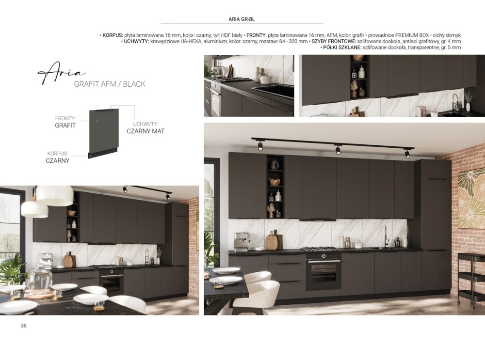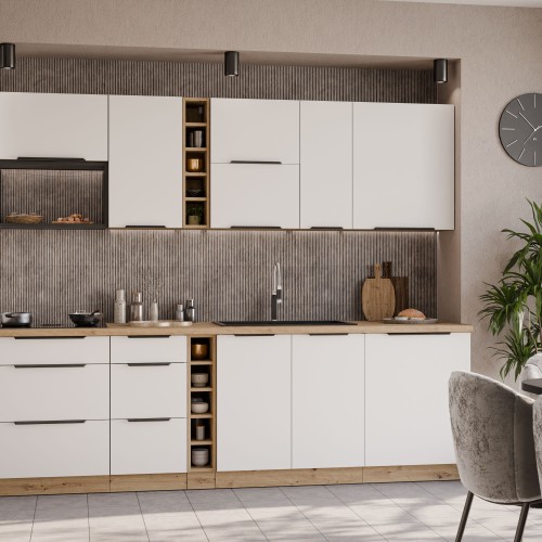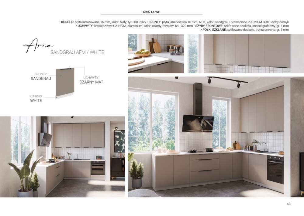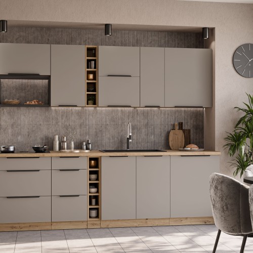 KUCHNIA ARIA to połączenie elegancji i funkcjonalności, które tworzy przestrzeń idealnie dopasowaną do indywidualnych potrzeb. Dostępna w wielu wariantach kolorystycznych, emanuje harmonią i nadaje wnętrzu wyjątkowy charakter, budząc przy tym poczucie komfortu i domowego ciepła.