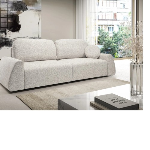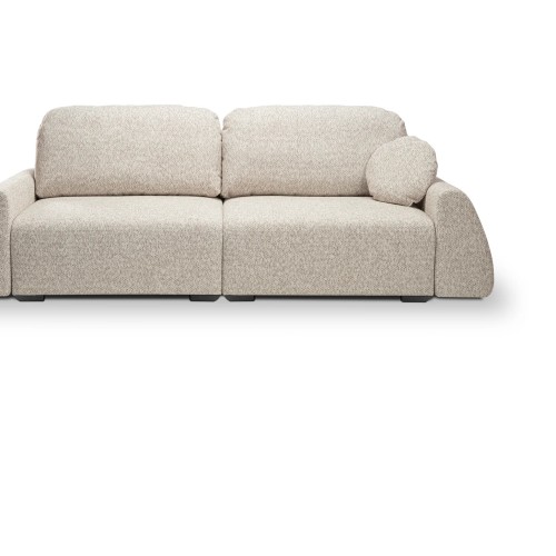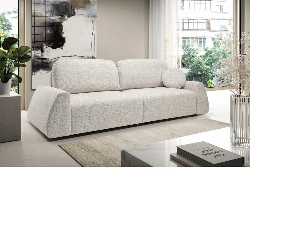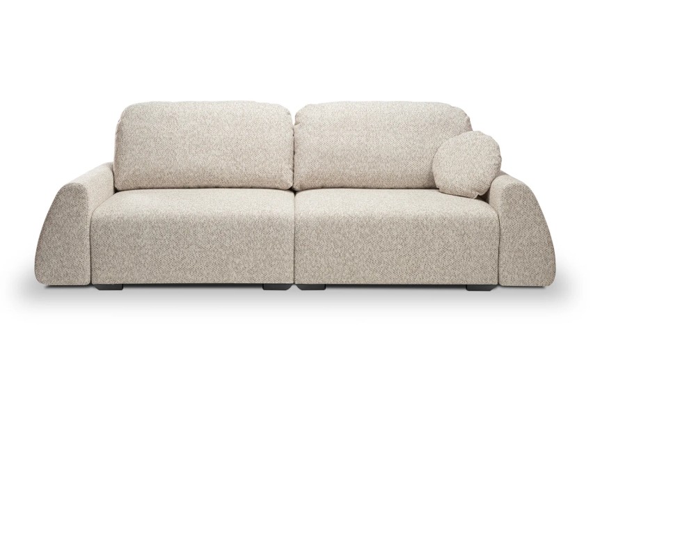 SOFA ALMI posiada ruchome poduchy oraz jedną ozdobną w zestawie, funkcje spania oraz pojemnik na pościel.