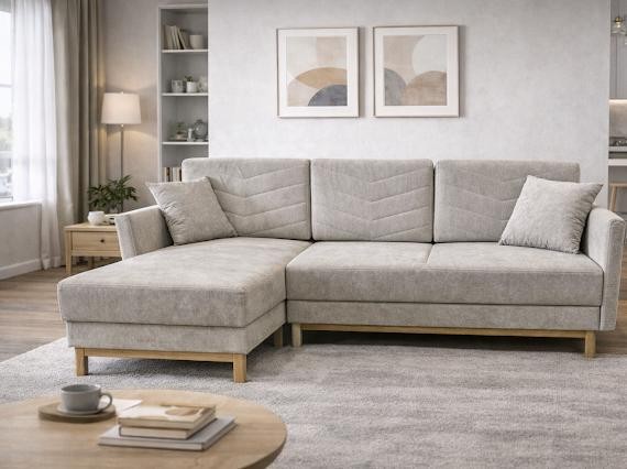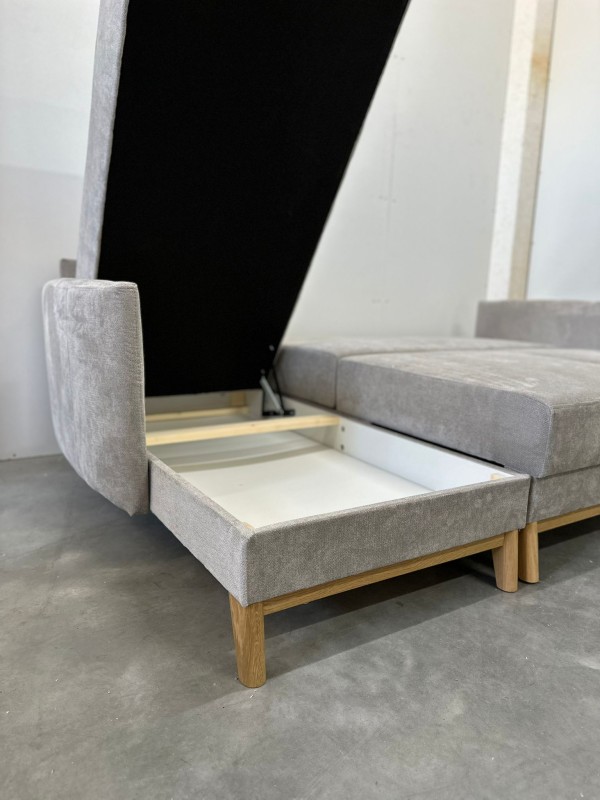 NAROŻNIK BRAGA posiada ruchome poduchy, funkcje spania oraz pojemnik na pościel.