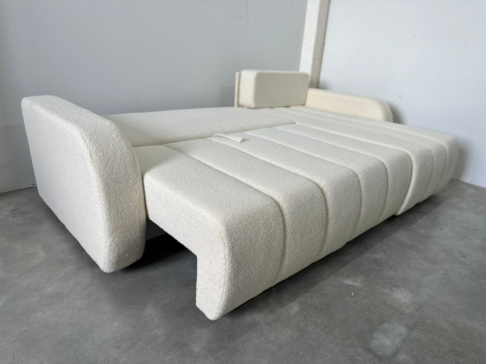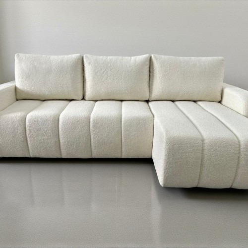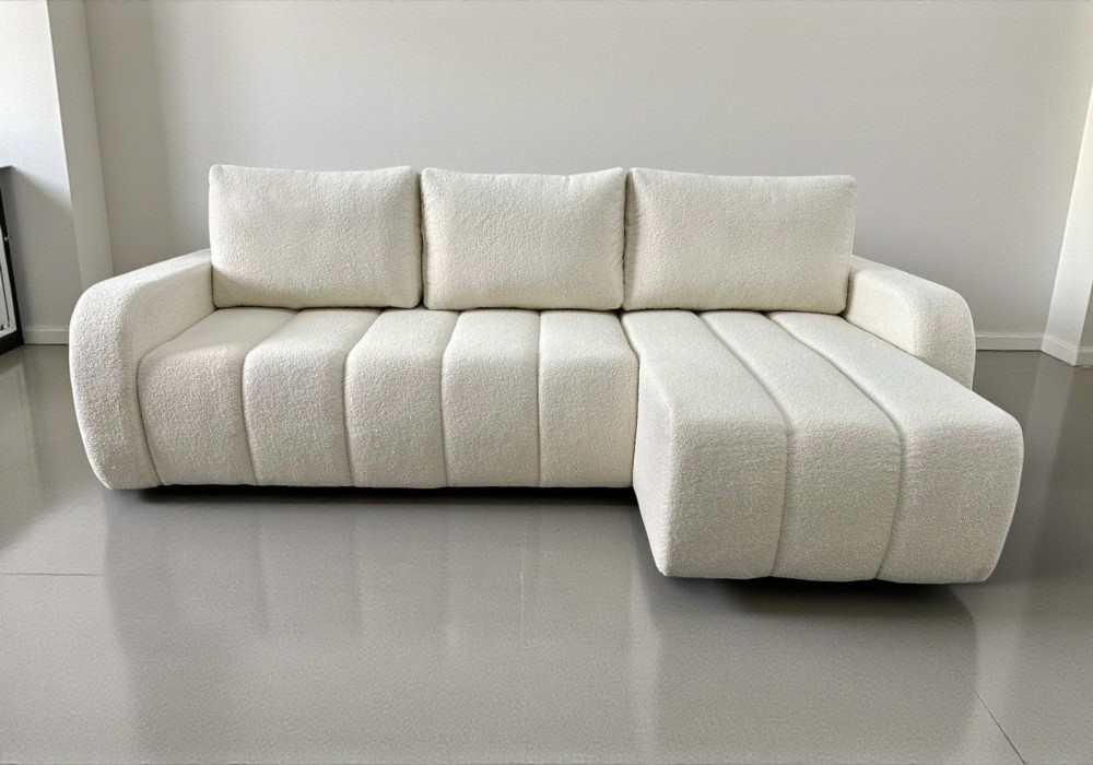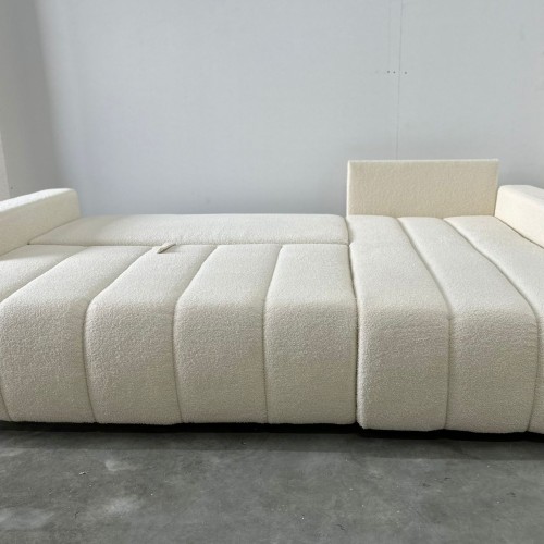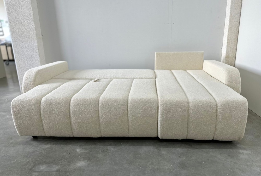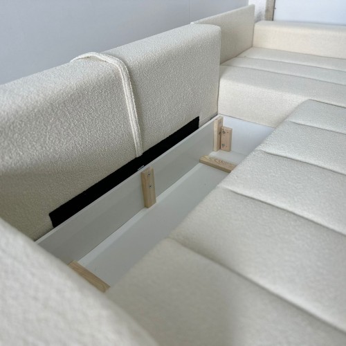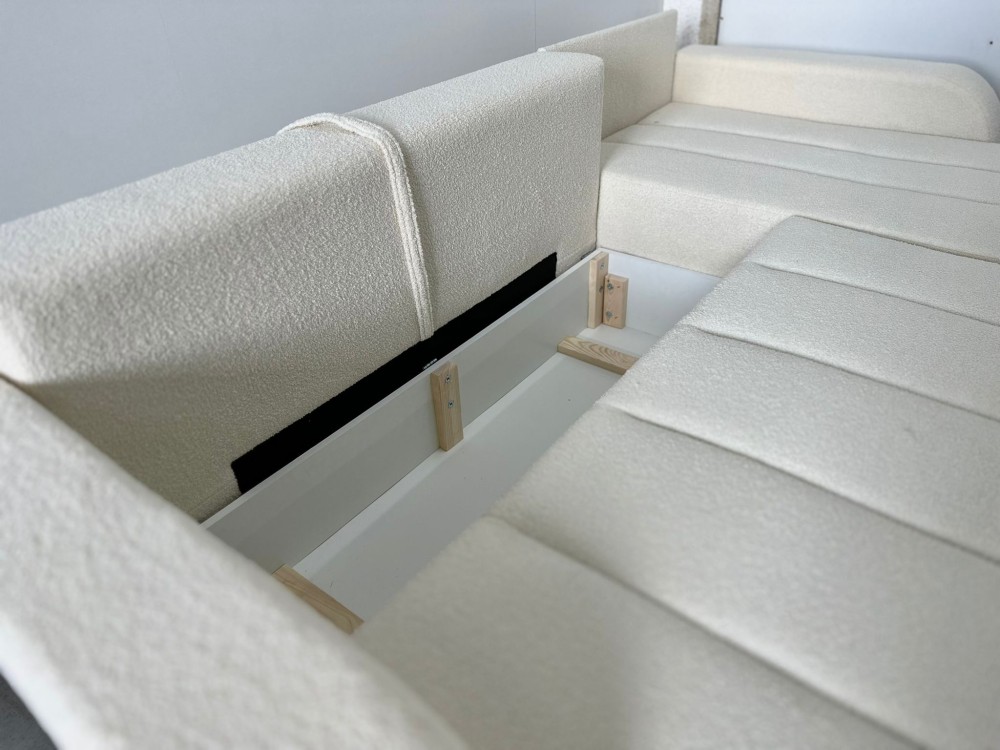 NAROŻNIK LAMBI posiada ruchome poduchy, funkcje spania oraz pojemnik na pościel.