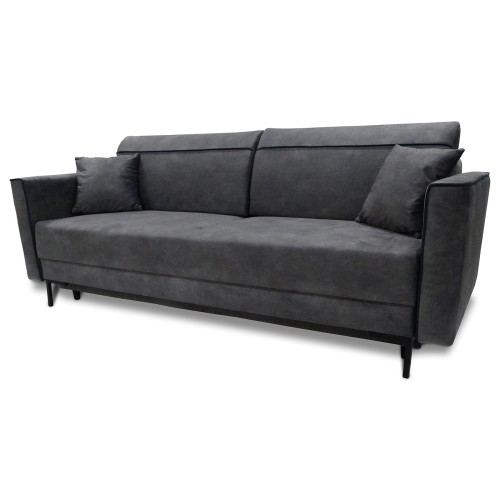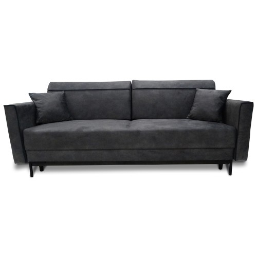 KANAPA SANTIAGO posiada ruchome poduchy oraz dwie mniejsze w zestawie, funkcje spania oraz pojemnik na pościel.