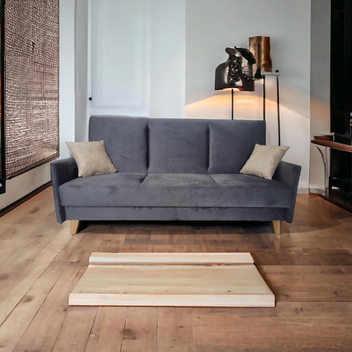 WERSALKA DORIS posiada ruchome poduchy oraz dwie mniejsze w zestawie, funkcje spania oraz pojemnik na pościel.