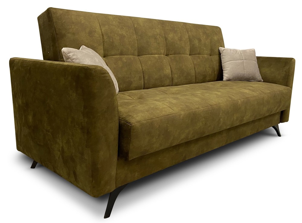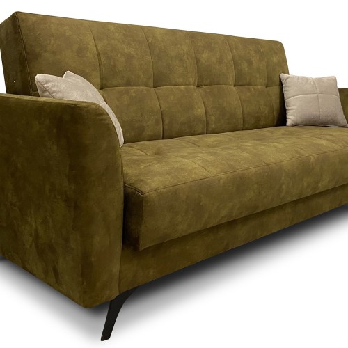 WERSALKA MADIS posiada dwie mniejsze poduchy w zestawie, funkcje spania oraz pojemnik na pościel.