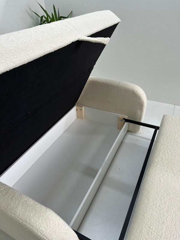 AMERYKANKA CALMA posiada dwie mniejsze poduchy w zestawie, funkcje spania oraz pojemnik na pościel.