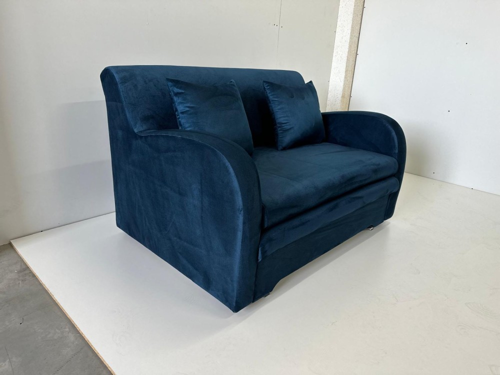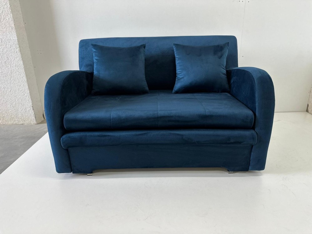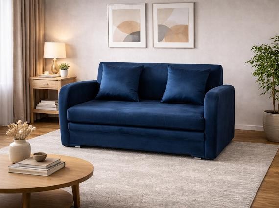 SOFA ASIA posiada dwie mniejsze poduchy w zestawie, funkcje spania oraz pojemnik na pościel.