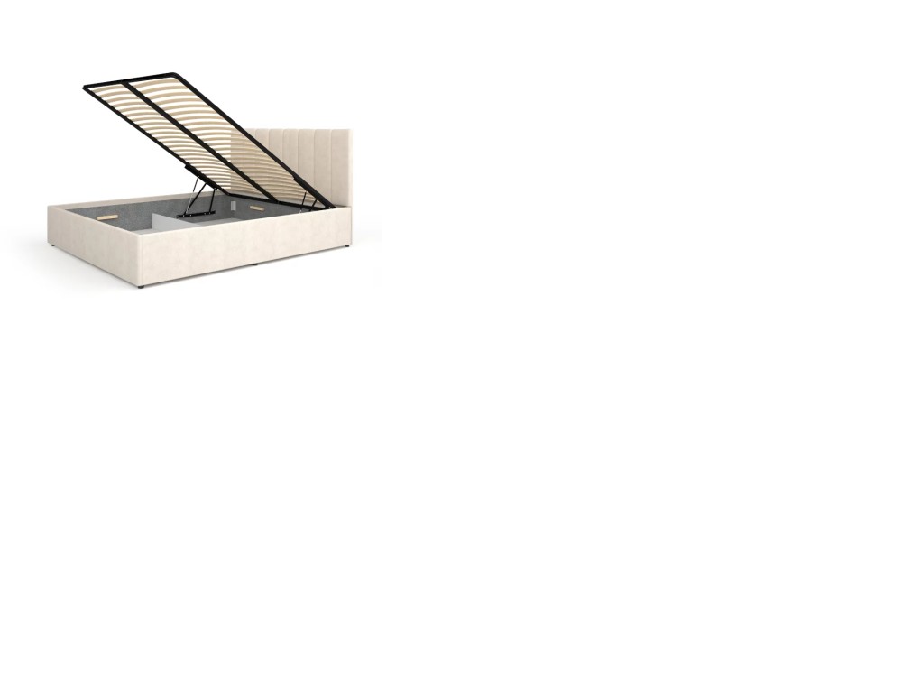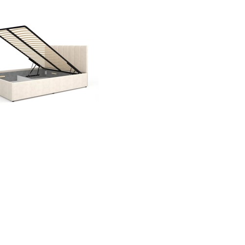 Ten model łóżka posiada pojemnik na pościel, wygodny podnośnik gazowy, tapicerowany wysoki zagłówek