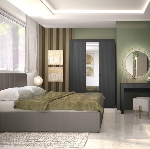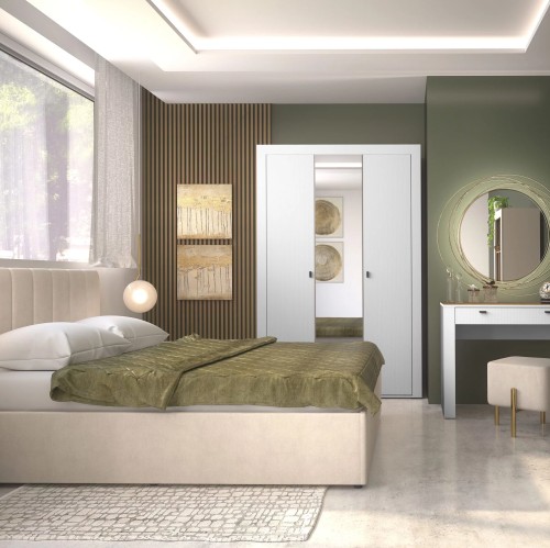 Odkryj funkcjonalność i elegancję w trzydrzwiowej szafie MOSSA. Wyrafinowanego charakteru Twojemu wnętrzu z pewnością doda ryflowany front, a lustro dodatkowo powiększy wizualnie pomieszczenie i pomoże w dobraniu modnego stroju.