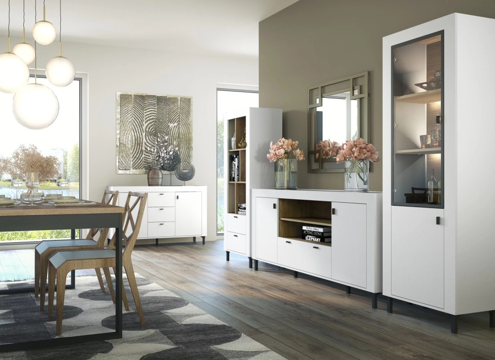 Bez wątpienia meble Mossa spełnią wymagania najbardziej wymagających klientów. Witryna świetnie sprawdzi się w salonie, sypialni czy też pokoju dziennym.