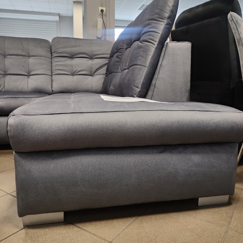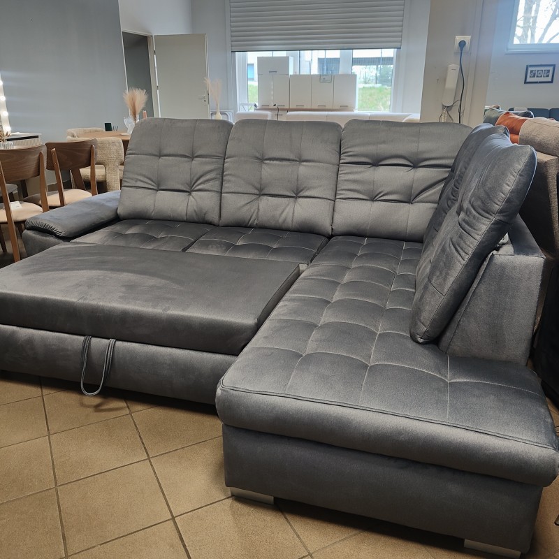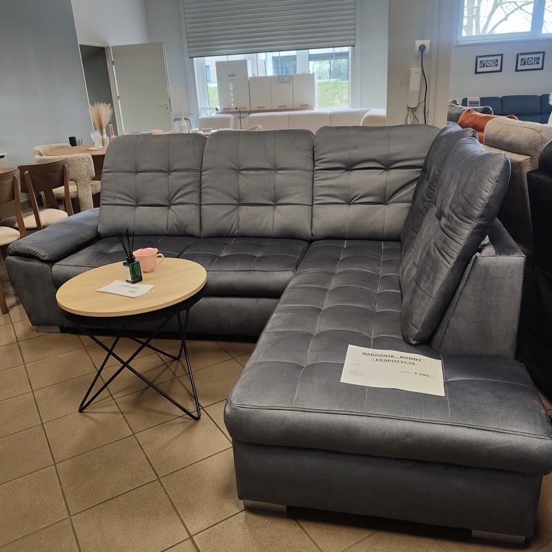 NAROŻNIK BONNY to elegancka i funkcjonalna opcja dla każdego wnętrza. Szerokość 255 cm zapewnia wygodną przestrzeń do odpoczynku. Narożnik wyposażono w sprężynę falistą, co gwarantuje komfort użytkowania zarówno na co dzień, jak i podczas snu. Funkcja spania oraz automatyczny system rozkładania typu delfin sprawiają ,że narożnik jest idealny do codziennego wypoczynku jak i nocowania gości. Mebel ten posiada pojemnik na pościel, który pomoże utrzymać porządek w salonie. Ruchome zagłówki pozwolą na dostosowanie ich do własnych potrzeb. Szara tkanina sprawia ,że narożnik prezentuje się nowocześnie i pasuje do różnych stylów wnętrza.