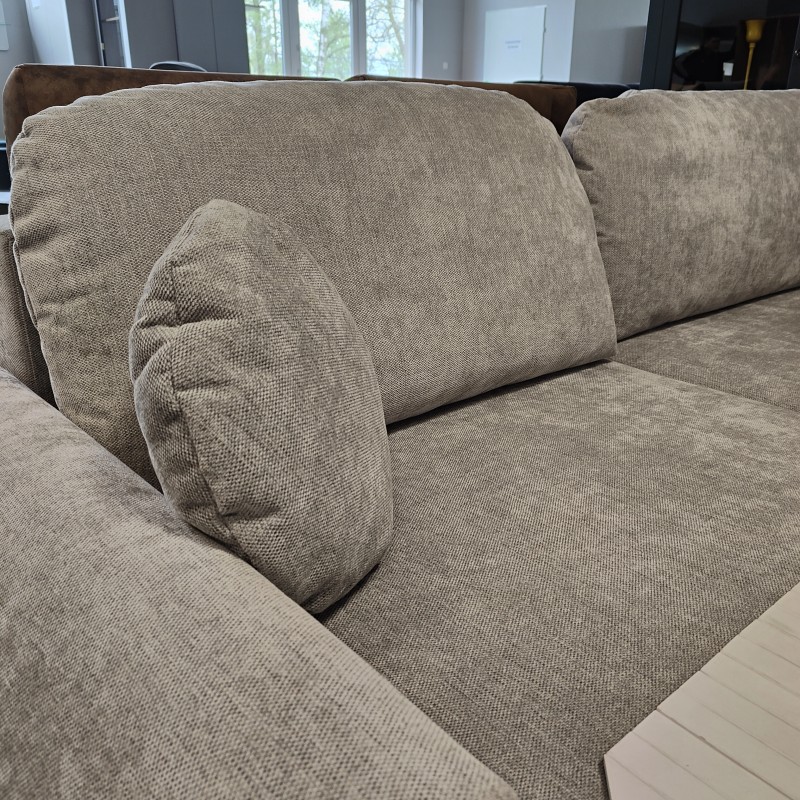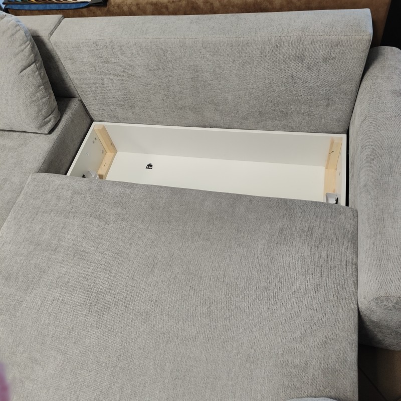 Rozkładany NAROŻNIK ALMI z funkcją spania i pojemnikiem na pościel to połączenie komfortu i funkcjonalności. Wyposażony w sprężyny faliste oraz piankę wysokoelastyczną, zapewnia wygodę i trwałość. Wykonany z solidnych materiałów – drewna, płyty meblowej oraz wytrzymałej tkaniny, odpornej na zużycie. Przestronny pojemnik na pościel ułatwia przechowywanie, a miękka tkanina dodaje przytulności. Idealny do codziennego użytku i relaksu. Mniejsze poduszki w zestawie.