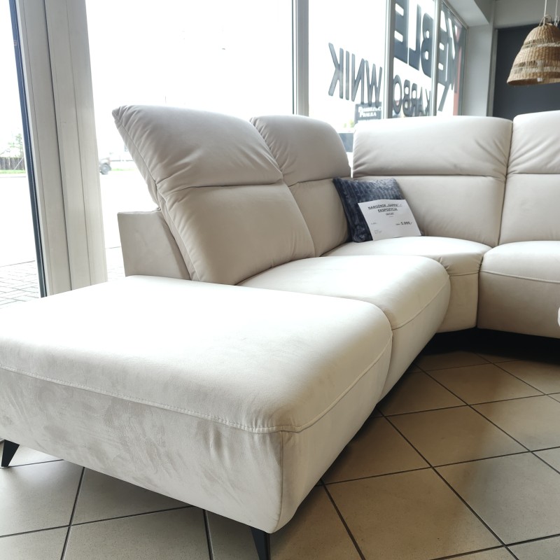 NAROŻNIK GAPPA z funkcją relaks sprawdzi się idealnie w większych pomieszczeniach. Regulowane zagłówki oraz część wysuwana elektrycznie.