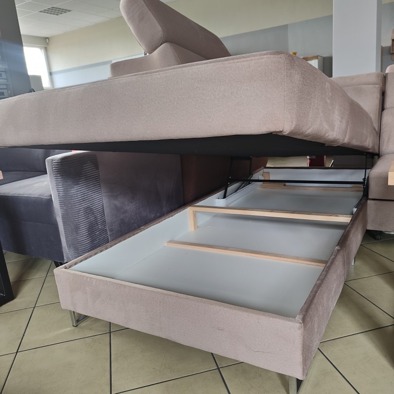 Wyposażony w funkcję spania typu delfinek oraz pojemnik na pościel, doskonale sprawdzi się zarówno w codziennym użytku, jak i podczas wizyt gości. Posiada również regulowane zagłówki.